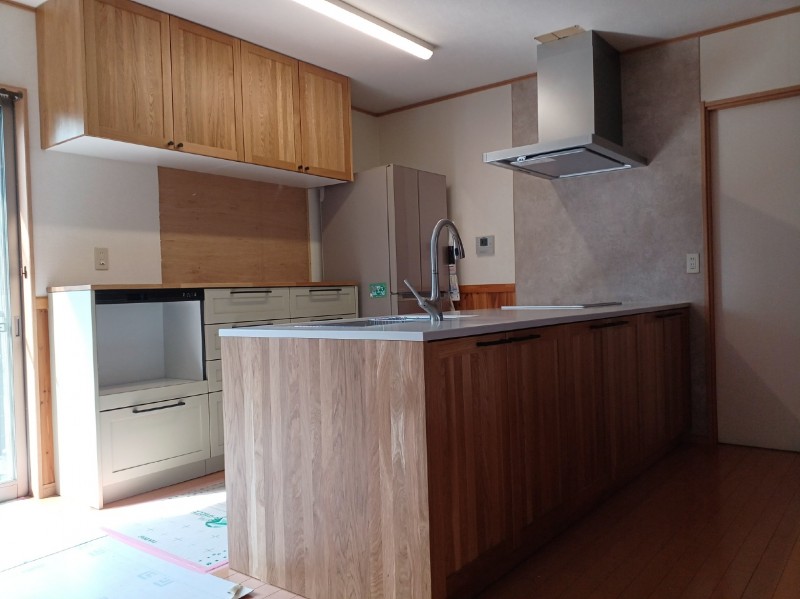 システムキッチンは、箱物梱包が多く部屋中製品だらけです。猫の手も借り
