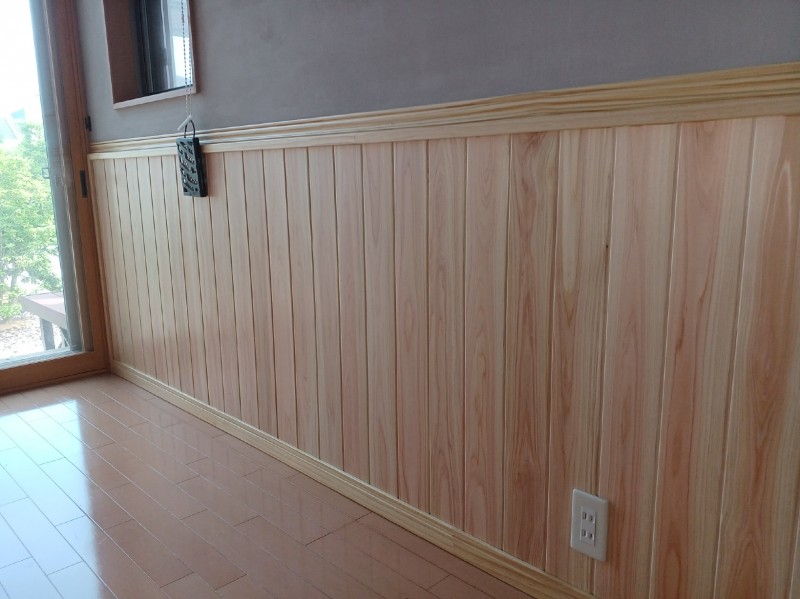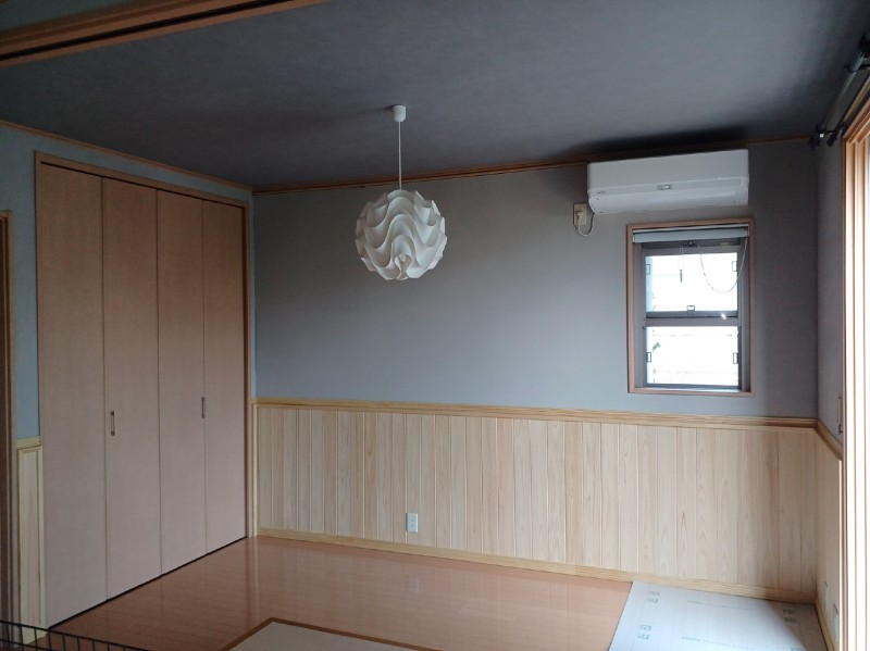 以前はクロス貼りでしたが、腰板に貼り替え上段は珪藻土塗りで仕上げました。